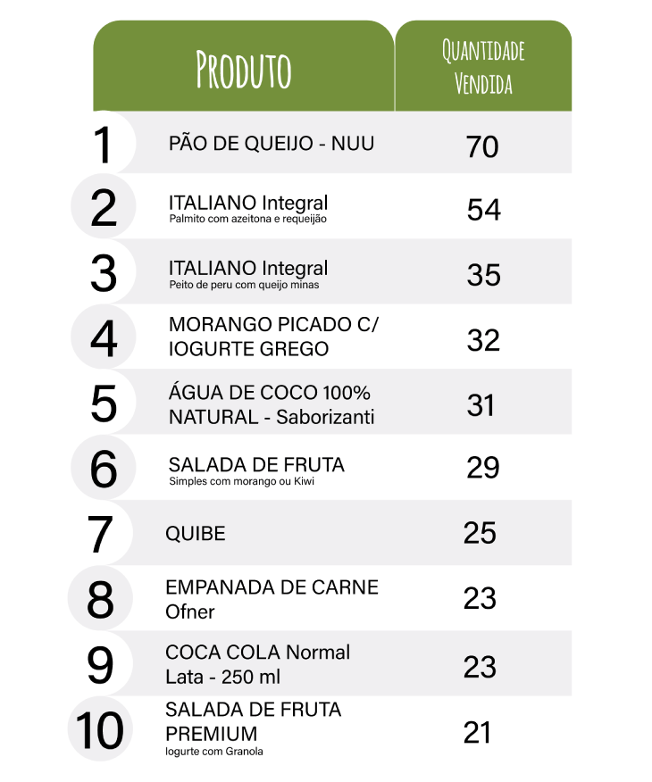 Acompanhe e entenda o perfil de consumo para aprimorar a experiência de seus moradores ou colaboradores. Veja os produtos TOP 10 e customize a variedade disponível, melhorando a experiência para os colaboradores da empresa ou moradores do condomínio.